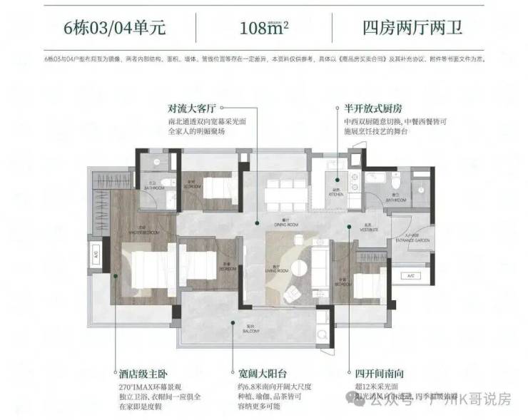 按照规划,项目商品房位于地块西侧,包括6栋层26-33层住宅,以T5风车型全南向户型规划布局。容积率3.4,计容建面9.86万㎡,得房率基本超100%,拥有1.8万㎡围合式大园林及1.5万㎡红线内外绿化与江景资源,致力打造成白鹅潭品质舒居标杆。