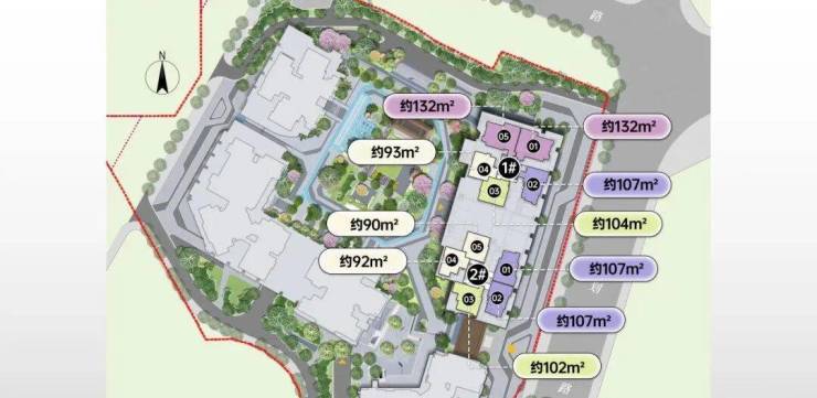 项目采用“新中式合院”设计,还进行了30度楼体扭转,以此实现更宽敞的楼间距,更开阔的景观视野,更好的通风和采光。