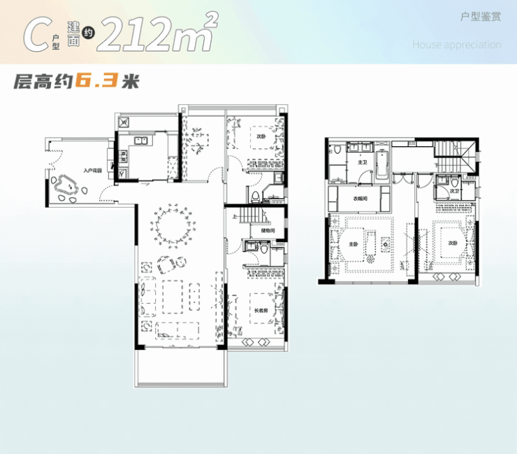 产品方面:产品呈现雁翅形布局,楼宇单线排布,保障户户私密无对望,并有南向无限楼间距让视野毫无遮挡。“空中美墅”产品深刻洞察中国家庭结构变化趋势,通过双层墅居、128%超高使用率的咬合型复式可以让一家三代各得其所