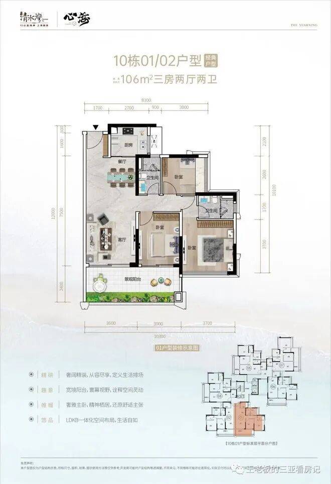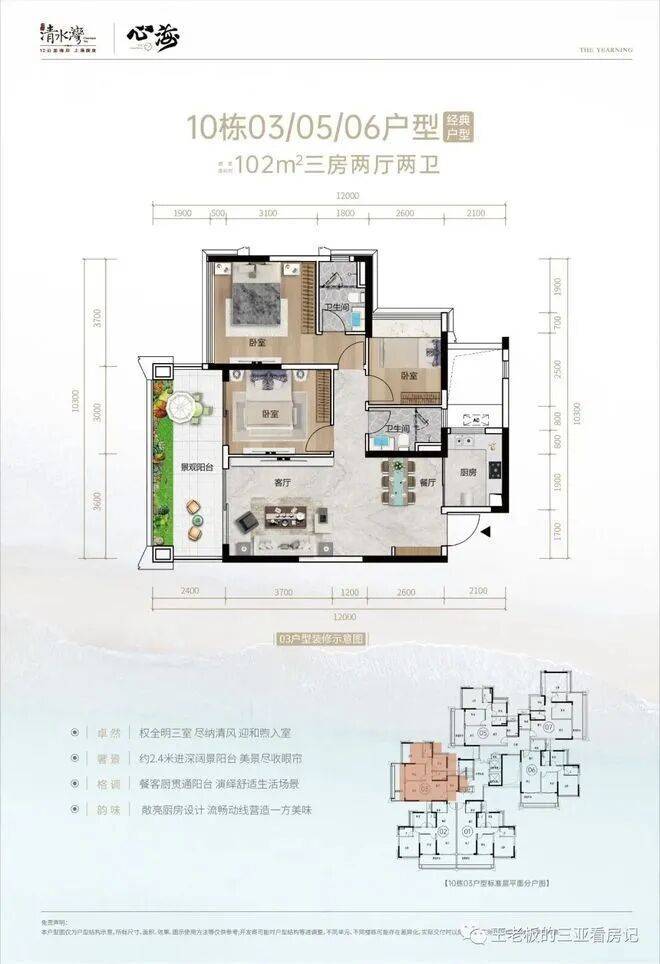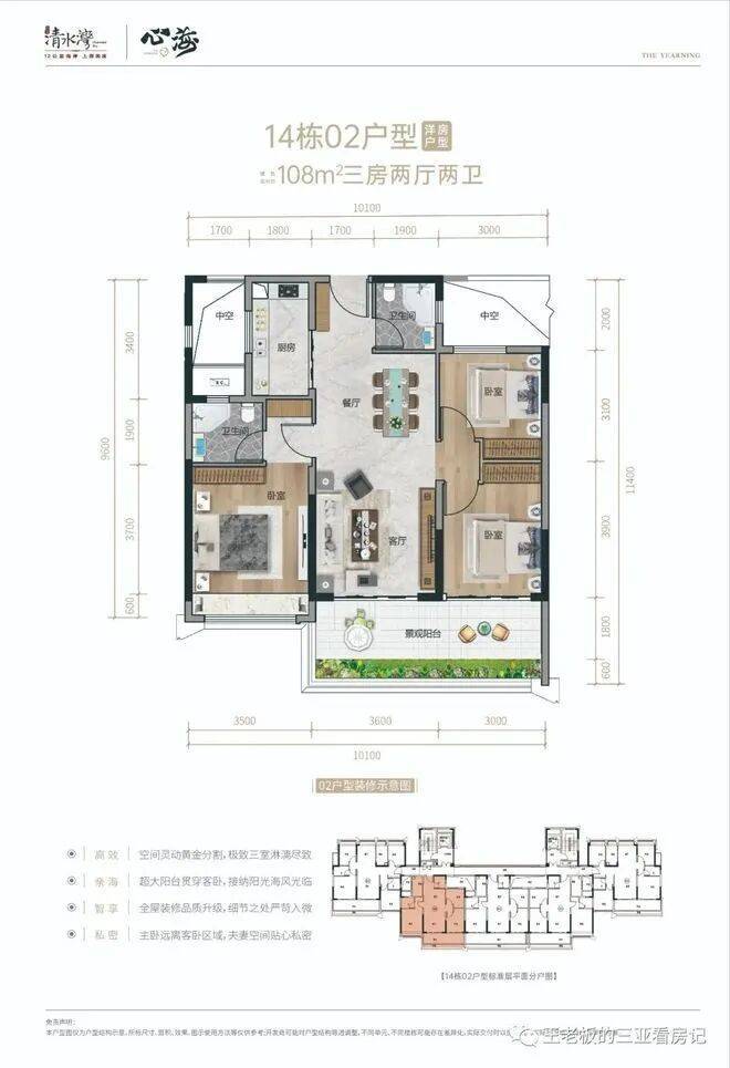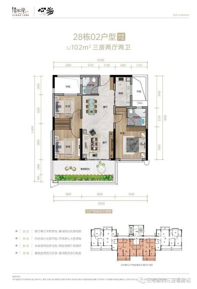 【面积段】:目前在推小高层产品面积约:102、103、105、108、111、131、141、165㎡10号楼102㎡三房两卫户型10号楼106㎡三房两卫户型28#02、03号位 三房两位户型12#、13#、14#02号房05号房108㎡户型,三房两厅两卫12#、13#、14#03号房111㎡户型,三房两厅两卫15、16号楼103㎡户型,三房两厅两卫27#02、03号位104㎡户型,三房两厅两卫12#06号位、13#01号位118㎡户型,通透三房两卫12#01号房、29#05号房、13#06号房,14#01和06号房,131㎡户型,四房两厅两卫15#05号房、16#01号房、29#01号房141㎡户型,四房两厅两卫15#01号位、16#05号位、28#01、05号、164㎡四房三卫椰林观澜【示意图】海浪客厅【示意图】四、【倾力打造架空层功能区 买100㎡享受10000㎡生活】