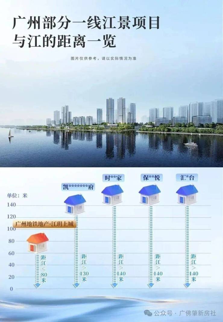 纵观广州一线江景项目,无论是汇悦台、广粤尊府等老牌标杆,还是近年新作,均严格遵守130米以上的退距,空间的疏离,已成常态。