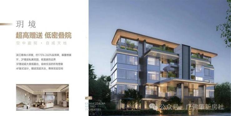 项目叠院小高层,层高仅5层,妥妥是广州绝版近10年的类墅级产品。