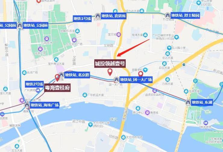 广州城投·东园公馆项目位处在东湖与北京路之间,靠近地铁站团一大广场,位置可以说是相当好。