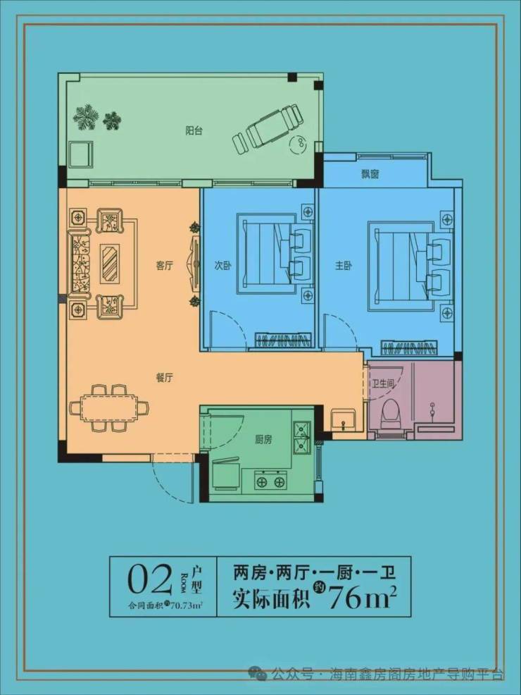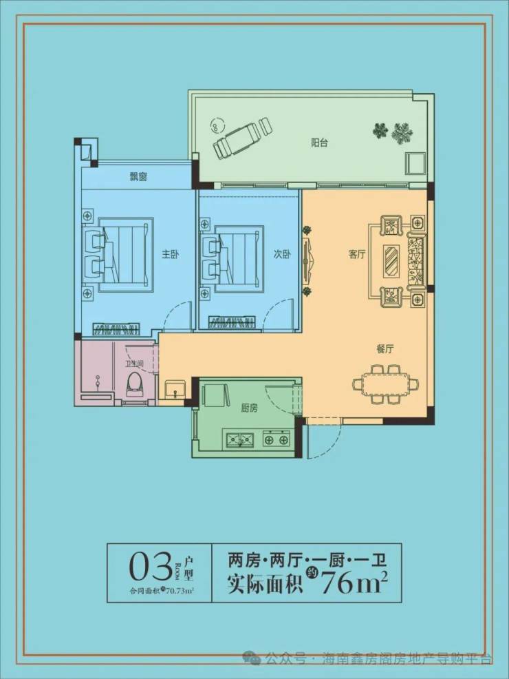 建筑面积:70平米,实得面积76平米