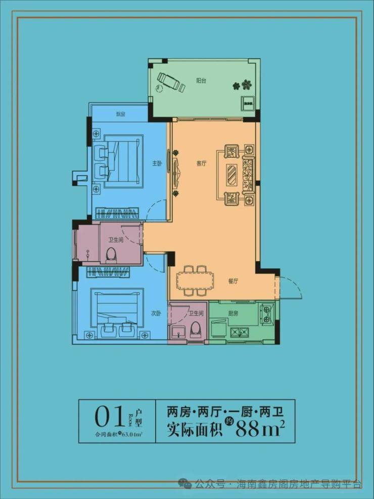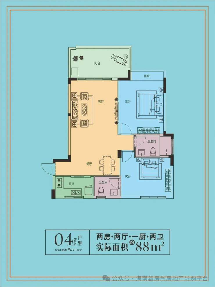 建筑面积:63平米,实得面积88平