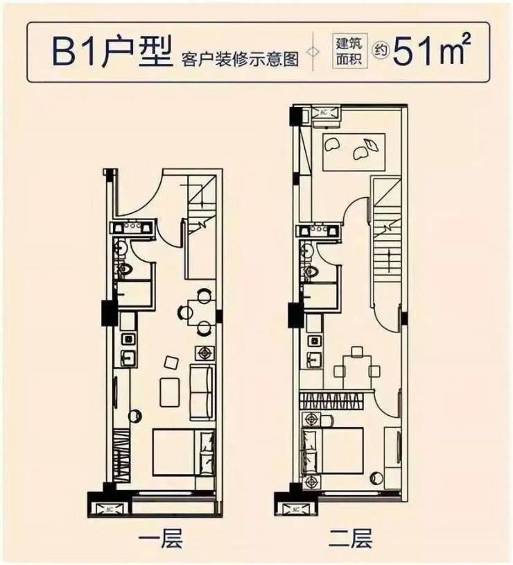 平层建面36㎡左右,复式为51-68㎡loft,层高4.5米,可打造成双层。