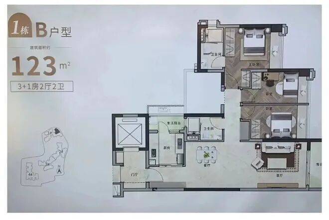 120平四房和125平A户型、125平B户型四房:分东北、东南、西南向,总价在1600-1700万之间,单价约13.3-13.6万/平。