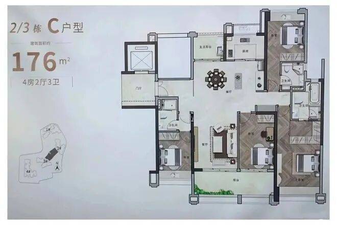178平四房:东南向,总价在3000-3200万,单价约16.8-18万/平。