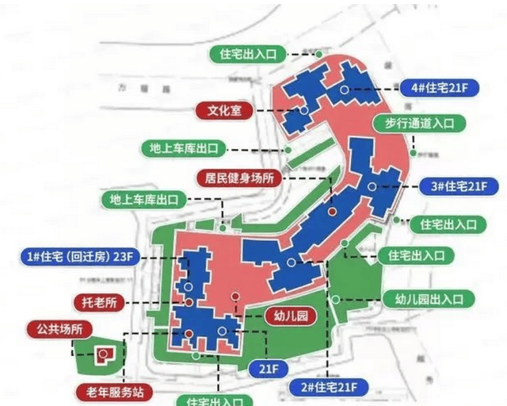 其中,南端的4#住宅为回迁房,其余3栋则为商品房,均为塔楼设计。