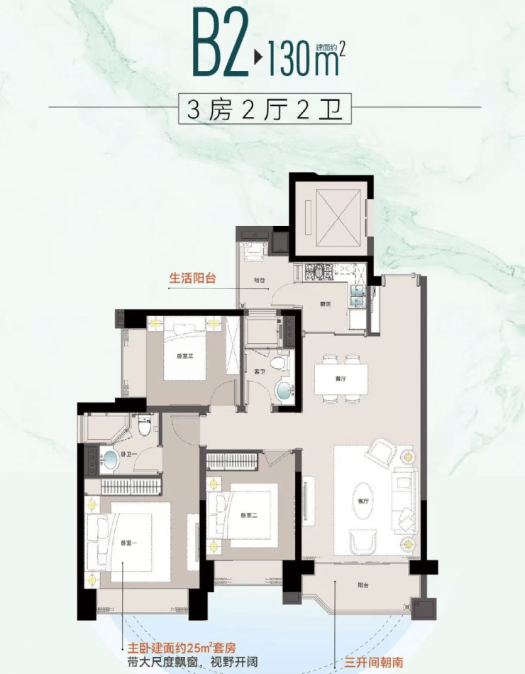 •130㎡三房:市面上同面积段的产品,通常能做到四房,而星河湾半山只做了三房,虽然房间尺度大,但对于刚需家庭来说,功能性略显不足。