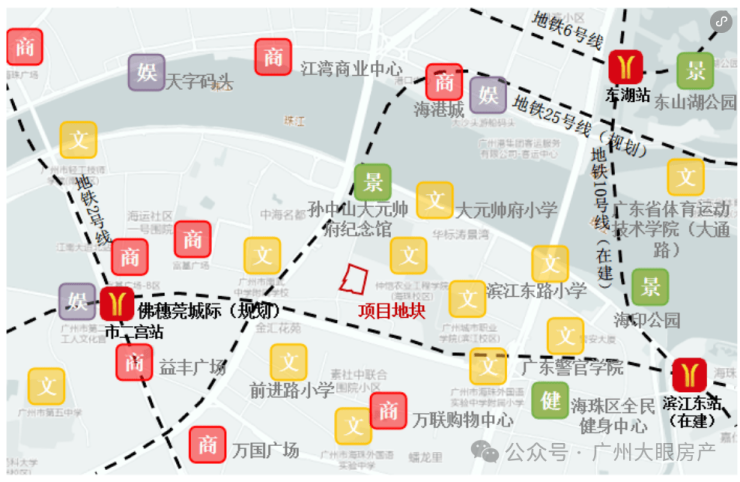 但架不住地块位置够好,离中大纺织城、珠城、越秀等地都很近,约15-20分钟左右车程即能到达。