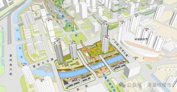 将采用“水岸共生”理念,以白海面涌为生态主轴,构建滨水慢行廊道。同时沿嘉禾望岗上盖设施打造景观化中轴公园,塑造片区创意活力。(非项目配建,以政府官方公示为准)