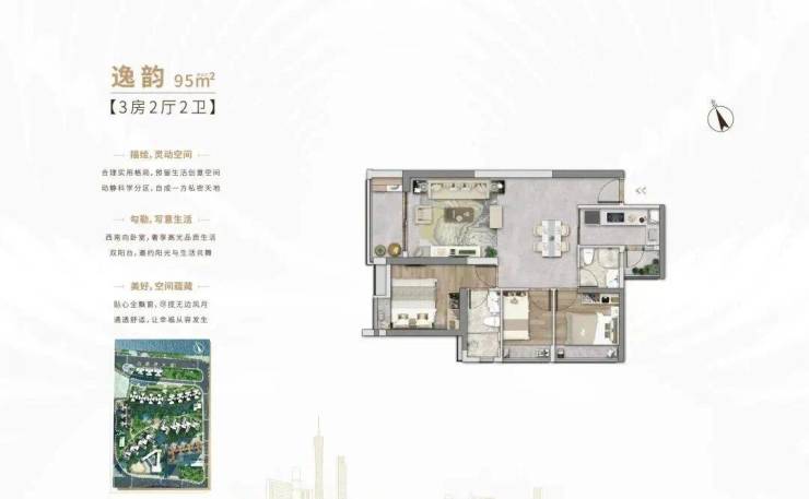 1.【95㎡三房两厅两卫】广州核心区绝版·南向主套三房