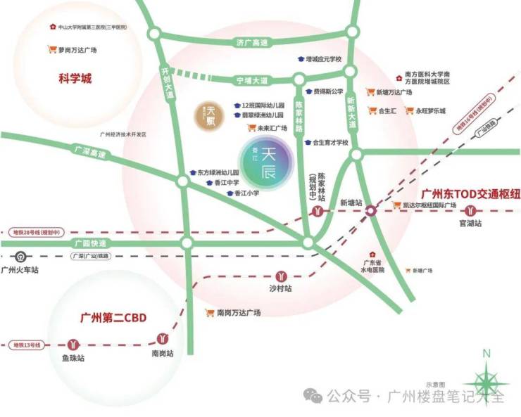 卖点二、便捷交通,28号线陈家林站(规划),两纵三横路网,邻距离到黄埔,1小时广深都市生活圈。