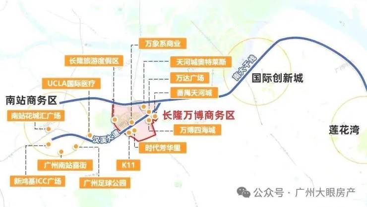 3大商圈,车行7分钟可达【万博商圈】,20分钟【珠江新城商圈】及【琶洲-广州塔商圈】