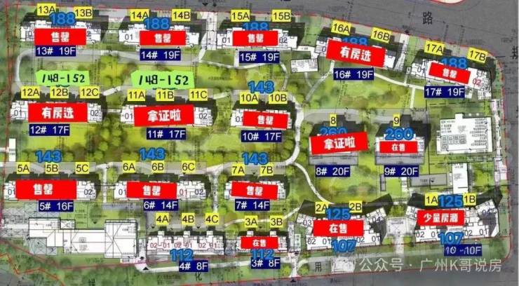 小区一共规划2栋塔楼以及15栋板楼,共17栋楼,层高在8-20层,楼距普遍在40-50米之间,居住舒适度不用多说。