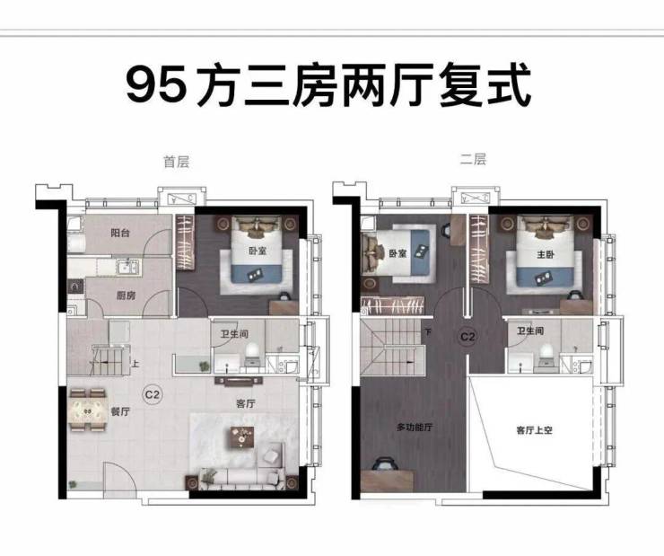 【产品面积】:平层45㎡-92 ㎡;复式45-95㎡