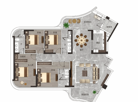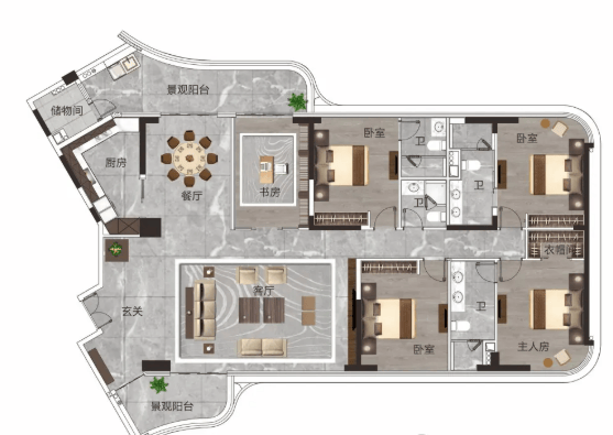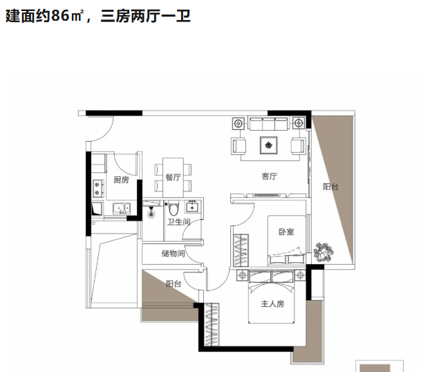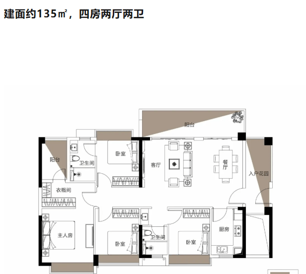 85-138㎡奢装洋房:高拓展面积户型,入户花园、阳台、飘窗均有赠送空间,满足多样化居住需求。