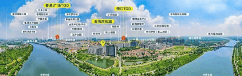 金海岸花园位于广州市番禺区的核心地带——番禺广场板块,这里被定位为“番禺新中心”。项目紧邻3号线东延段傍江站TOD,距离仅约500米,步行即可轻松到达。依托于TOD双子星的规划理念,金海岸花园不仅享有便捷的城市交通网络,还坐拥丰富的教育、商业和生态资源,是追求高品质生活的理想之选。