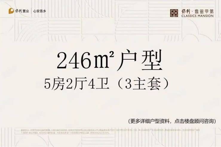 广州·保利翡丽甲第主打大平层产品,面积从165平方米到250平方米不等,几乎所有的户型都享有不同程度的一线江景视野。特别是较大的户型,如250平方米的设计,提供了超过36米的无边界观江面,适合追求高品质生活的家庭。
