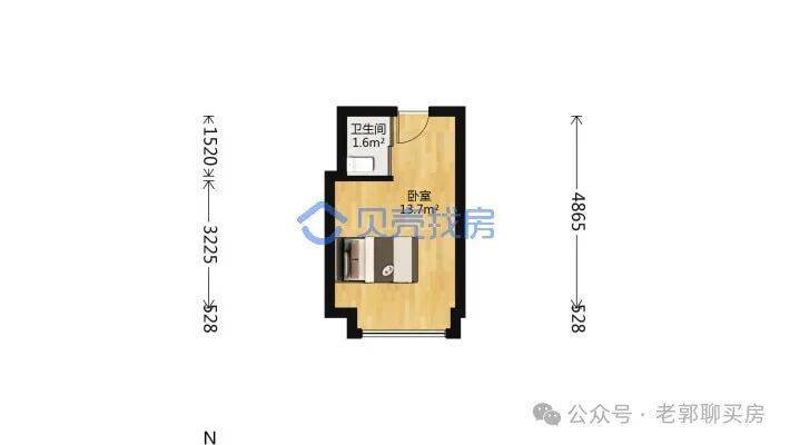 图1:中楼层 (共5层) 1室1厅 | 25.97平米 | 南,格局方正,采光通透。