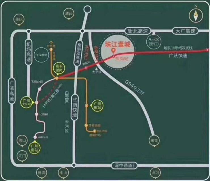14号线二期线路可解决白云区沿线居民和通勤客流出行、缓解沿线道路交通压力为主,同时,珠江壹城的业主们从小区即可乘坐接驳便民车直达地铁口,乘坐十四号线时不用换乘就可到达广州火车站,极大地增强了中心城区的快速联动。