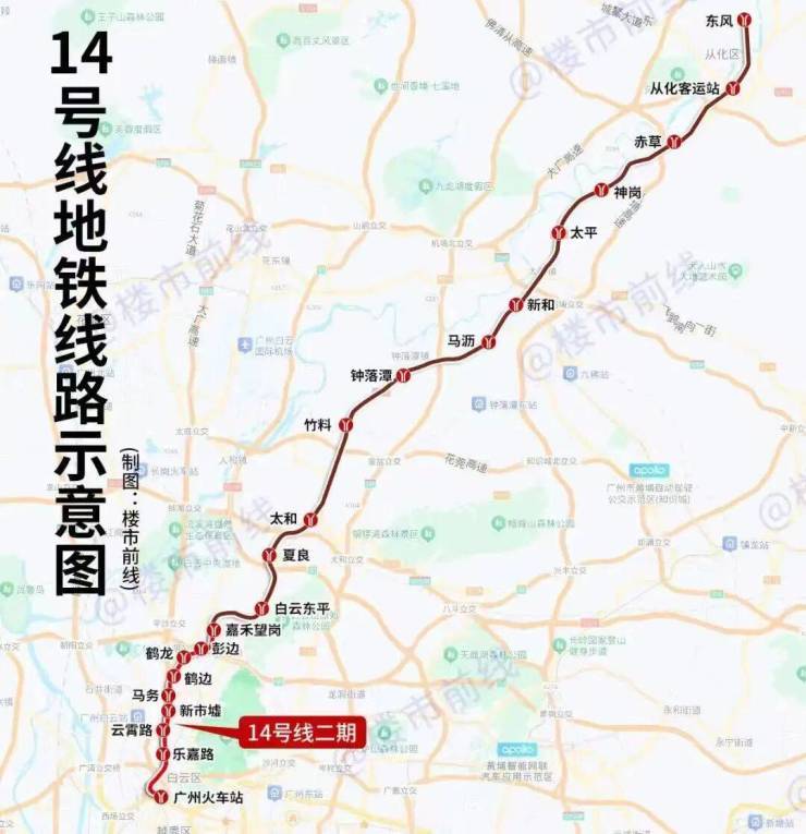 14号线一期站点:嘉禾望岗-白云东平-夏良-太和-竹料-钟落潭-马沥-新和-太平-神岗-赤草-从化客运站-东风