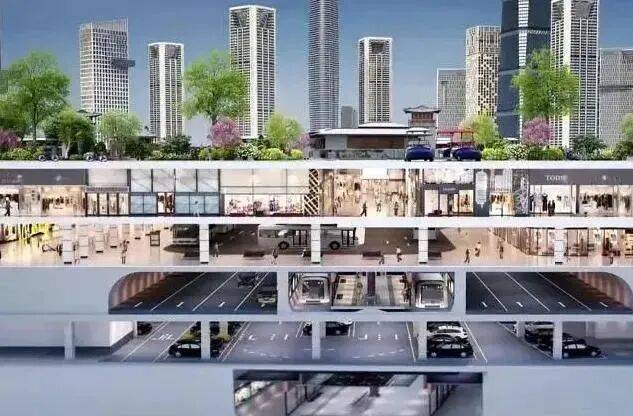 且地下的5层空间,汇聚地铁、轻轨、公交、汽车、APM等立体交通方式,打破平面式交通格局,实现地面零车流,为城市空间扩容。