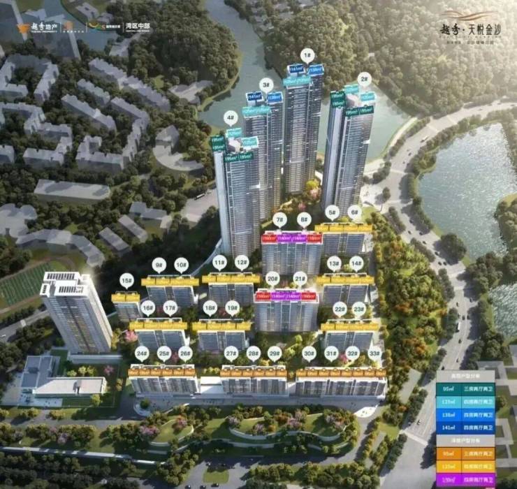 5、产品设计多样:提供95-200㎡多种户型,涵盖三房至四房,超高层景观户型与低密小高层兼顾,满足不同家庭需求。