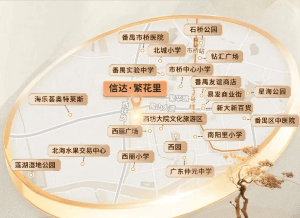 教育资源方面,周边环绕着市桥中心小学、北城小学、南阳里小学等口碑不错的学校,初中则有广东仲元中学、番禺实验中学等可选,不过具体学区划分还需以官方公示为准。