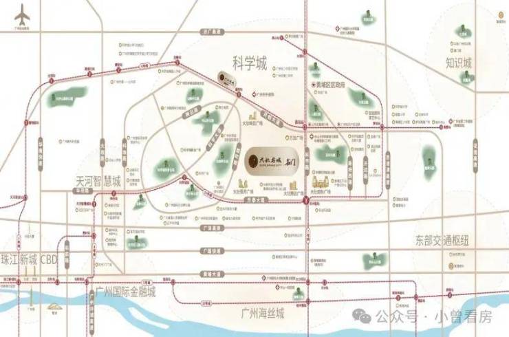 21号线苏元站虽需步行1.8公里,但能快速接驳天河智慧城和金融城,不管是通勤还是跨区出行都很方便。自驾的话,通过开泰大道、华南快速,20分钟内也能抵达珠江新城。