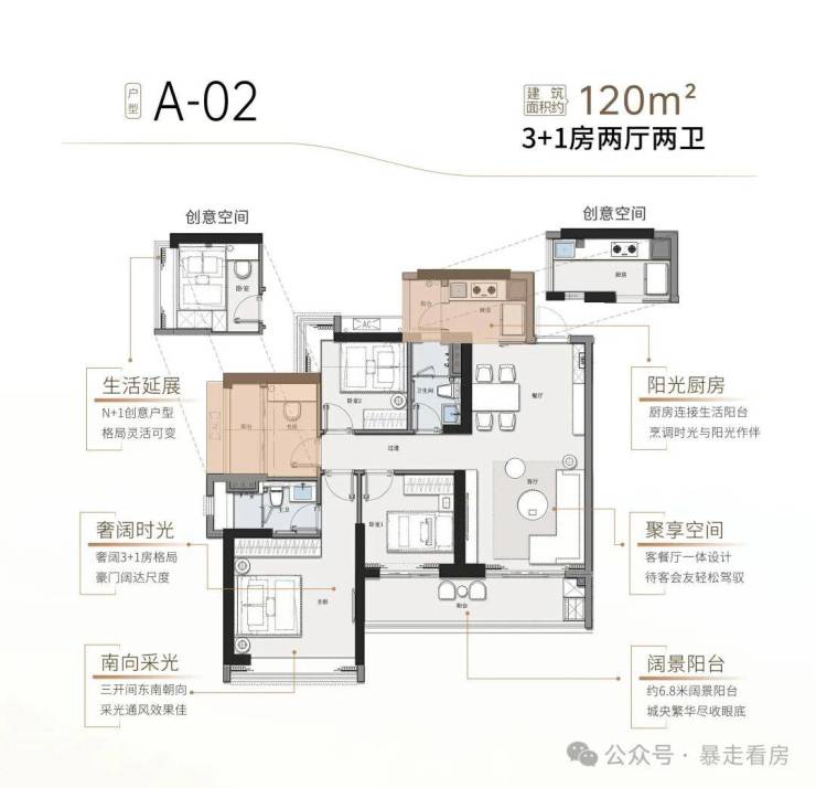 A-02 建筑面积约120㎡ 3+1房两厅两卫