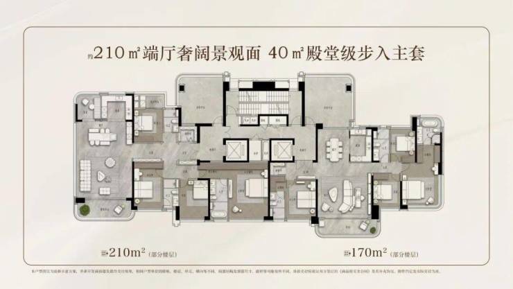 ◎户 型:建面约120-140-170-210㎡云幕平层