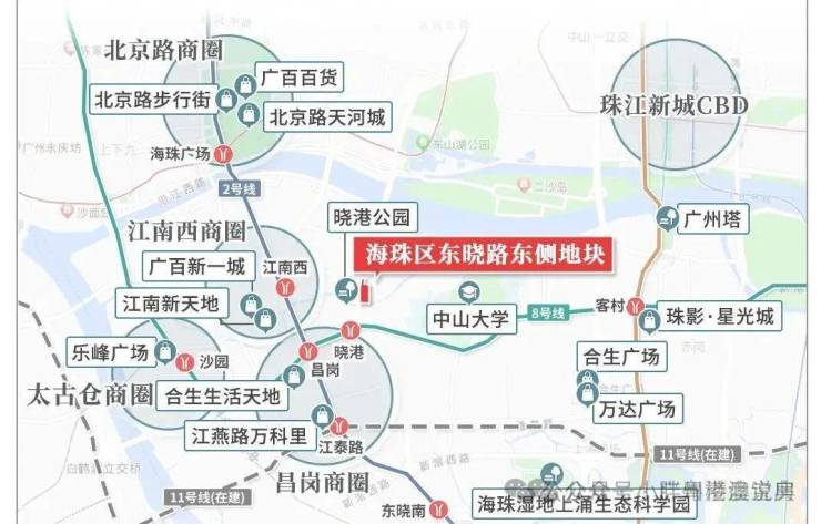 距离地铁8号线晓港地铁站仅0.6km,8号线可以直达琶洲、客村等商务圈,一站到昌岗可以换乘2号线,到南站、白云新城也比较方便,三站客村换乘3号线,到珠江新城、体育西路,能实现40min内通勤。