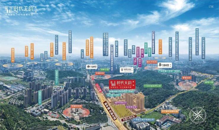 时代天韵所属的萝岗街道对口广州重点中学——苏元中学、科学城中学、铁英中学、省教育研究院黄埔实验学校(初中部)、北京师范大学广州实验学校(初中部)等