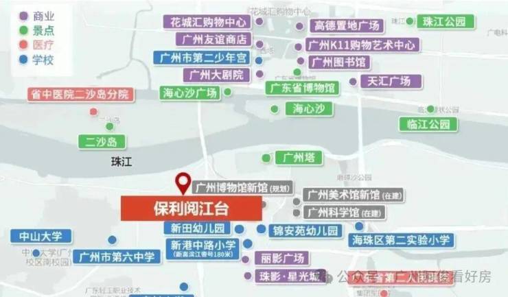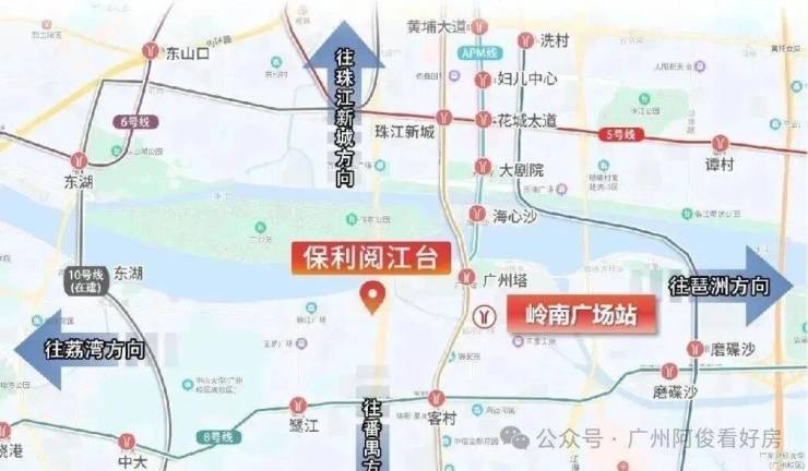 项目位于海珠滨江东板块,与珠江新城一桥之隔直线距离约2公里,驾车10分钟可达珠江新城CBD核心区。
