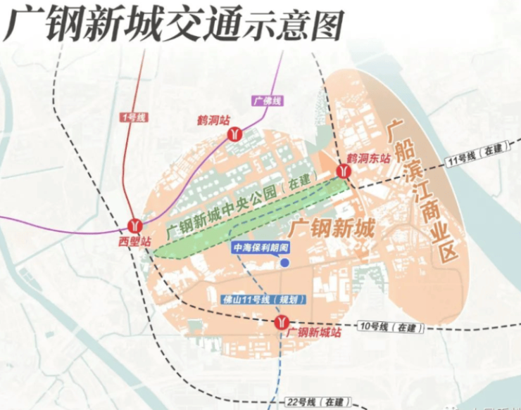 距离10号线&佛山11号线广钢新城站700米,东侧的11号线的鹤洞东站大约1.1公里。(10-11号线地铁已开通)