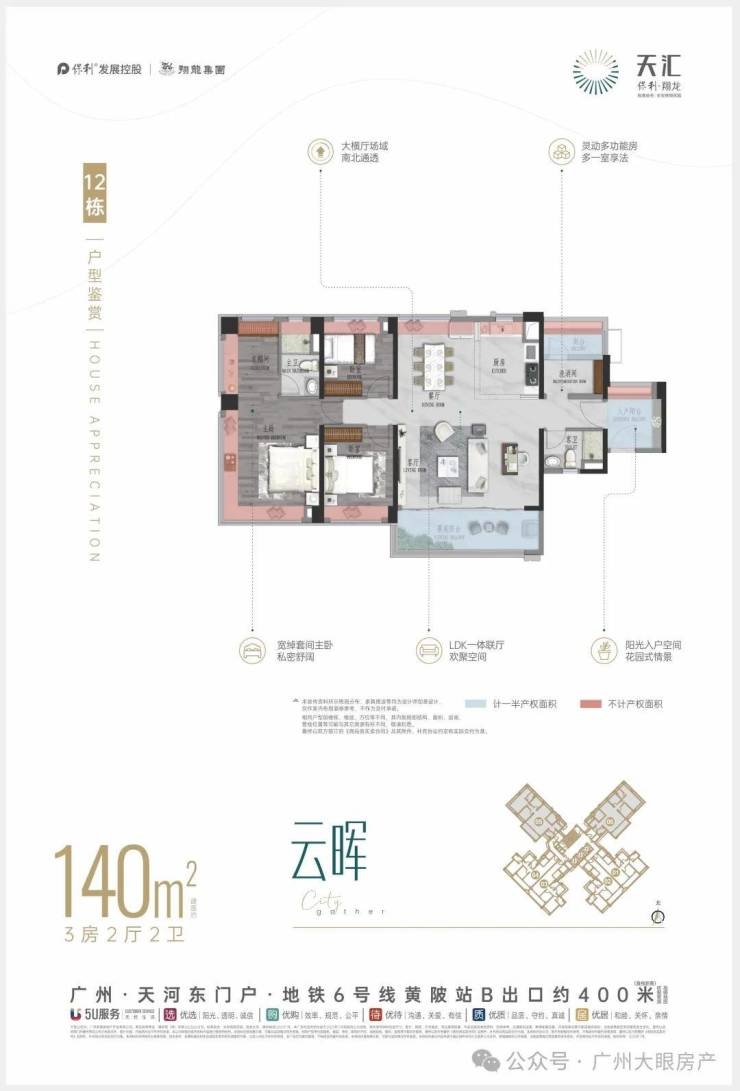 保利翔龙天汇位于广州市黄埔区老黄埔板块,是保利发展在黄埔打造的改善型住宅项目。项目总占地面积约4.2万㎡,总建筑面积约18.5万㎡,容积率约3.8,绿化率35%,规划8栋32-40层住宅,共约1200户,产权70年,精装交付,物业费4.8元/㎡/月,已于2023年分批交付。