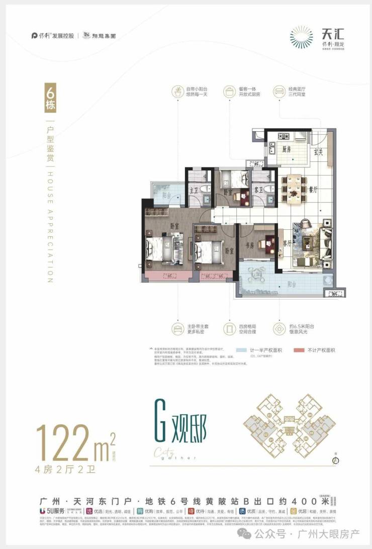 产品信息:项目在售二手房建面约85-140㎡三至四房,二手挂牌均价约5.0-6.5万/㎡,总价约425-910万/套。其中85㎡三房两卫总价约425-510万,110㎡四房两卫约550-715万,140㎡四房两卫约700-910万。户型采用2梯4-5户设计,配备LDKB布局、宽景阳台等配置,部分户型南北通透,高楼层可望珠江、黄埔港景观。