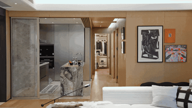 开放式厨房的布局升级为集美食、社交于一体的复合型生活主场,都能打破了传统空间界限,宴请宾朋时,私厨团队可从容施展技艺;阖家相聚时,家人亦能同享烹饪之乐,彰显与以往奢宅不同的居住体验。