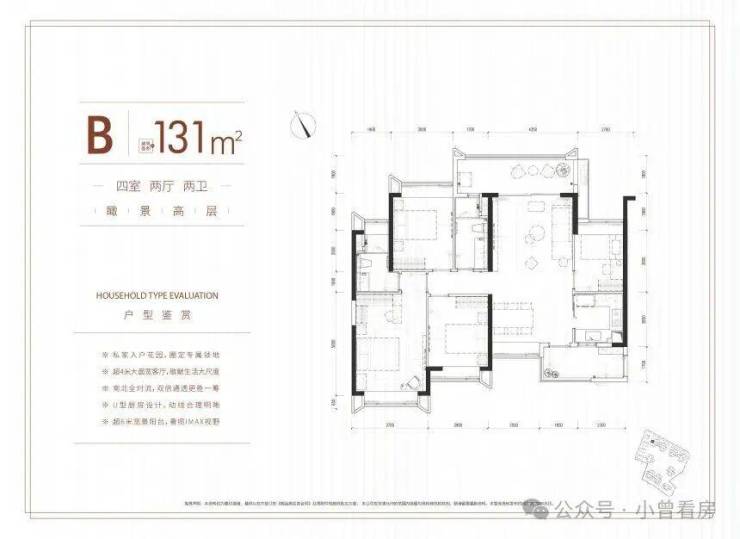 改善家庭可以重点看 131㎡的四房两厅两卫,总价 500-520 万元,均为南北对流设计。