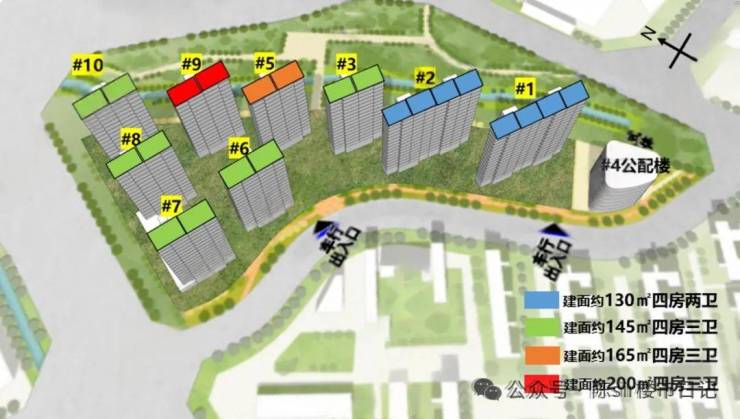 起步是130㎡四房两卫,分别位于#1栋与#2栋。