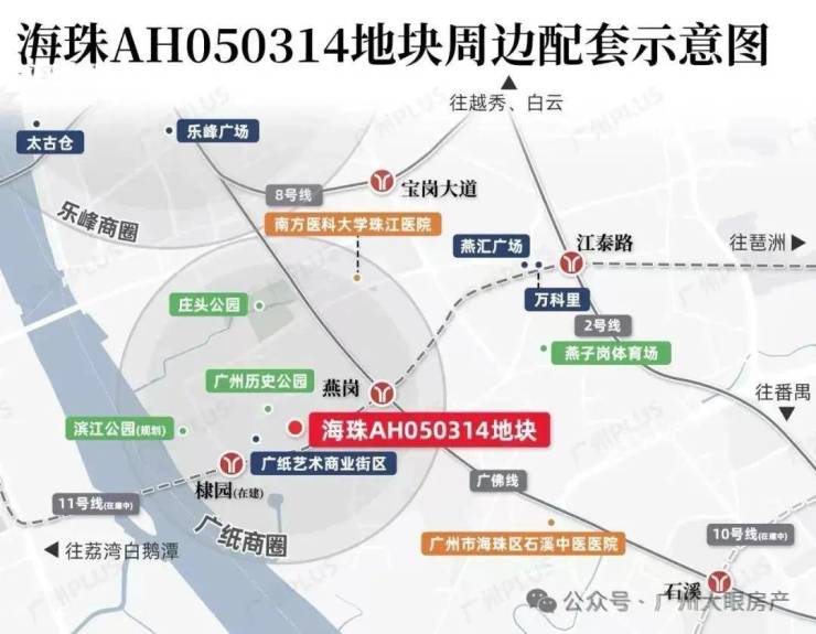 周边拥有双地铁:“换乘之王”广佛线燕岗站约400m(百度地图直线距离),广州首条黄金环城线11号线棣园站约250m(百度地图直线距离),直接打通琶洲、天河、海珠西和荔湾等区域,业主去哪都方便,7站南站、7站琶洲,轻松链接全城,虹吸广佛优质资源。