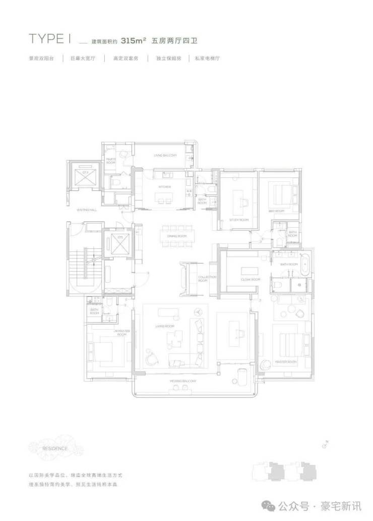 【315㎡户型】南北双阳台-独立保姆房-巨幕大宽厅-私家电梯厅