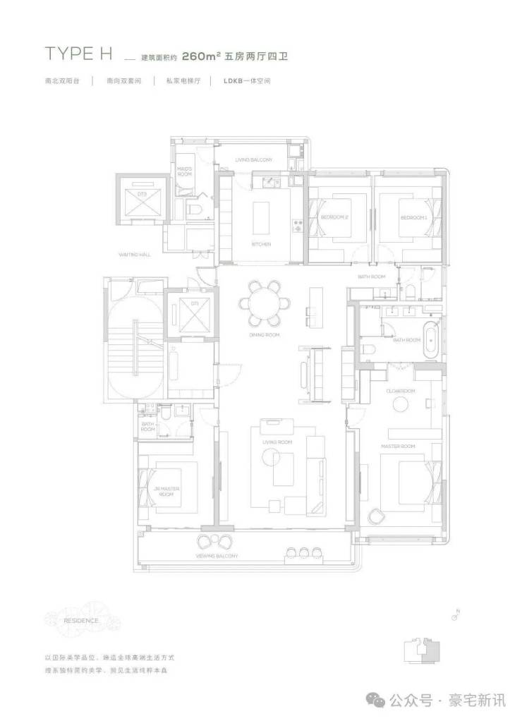 【260㎡户型】南北双阳台-南向双套间-私家电梯厅-LDKB一体化