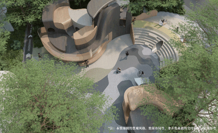 把小区西侧的城市公园视野引入社区,打造内院、外园的无界绿色视觉。