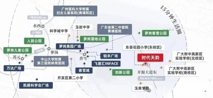 附近有区府香雪板块的商业配套,萝岗万达、保利未来香雪城在建中等约300万方醇熟商业。周边还有萝岗奥园广场、锐丰中心等商业。