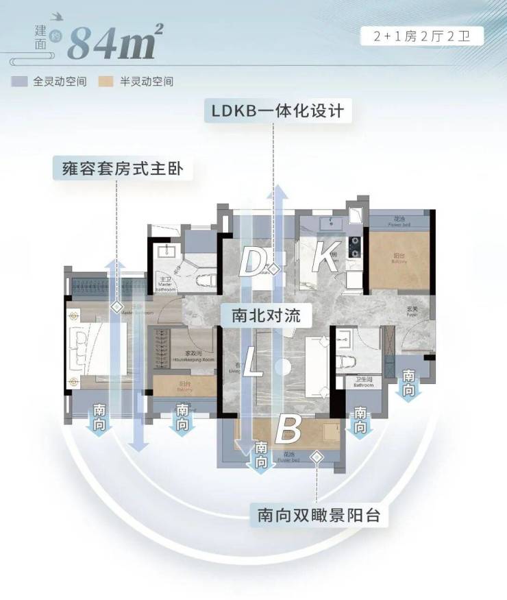 在售面积:85南向园景三房