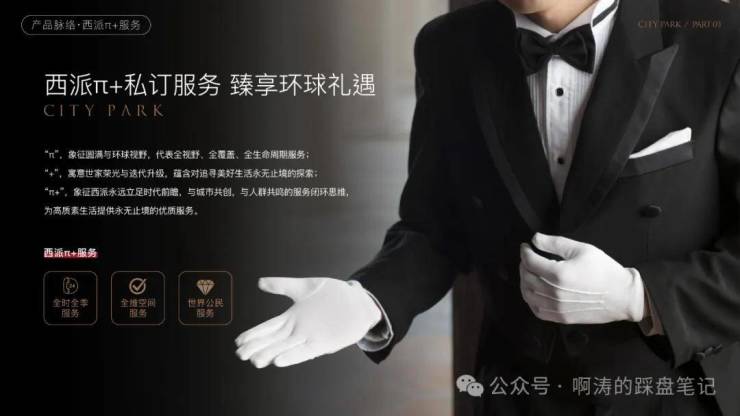 “π+”象征西派永远立足时代前瞻,与城市共创,与人群共鸣的服务闭环思维为高质素生活提供永无止境的优质服务。