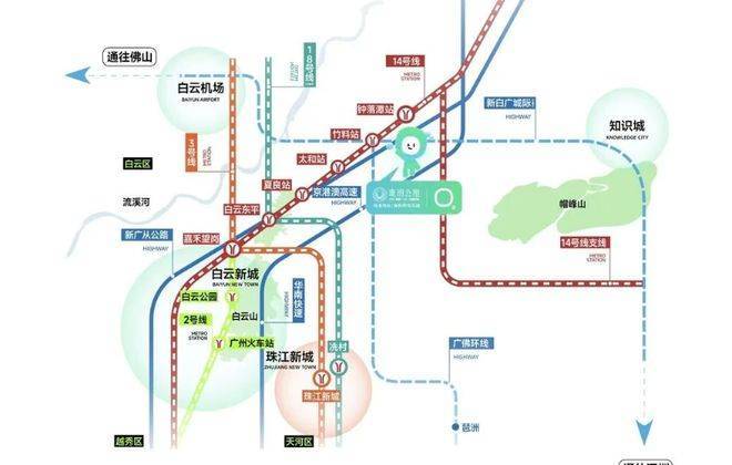 交通配套:距离地铁 14 号线钟落潭站一期约 900 米,二期距离地铁站约 500 米,步行较为方便,5 站可达嘉禾望岗,可轻松换乘 2、3 号线,快速直达白云新城、珠江新城等核心区域。此外,广佛环线和新白广城轨也在规划中,未来出行将更加便捷。自驾方面,有华南快速、京港澳高速、机场第二高速、花莞高速、广从公路等交通干道。拨打售楼处电话 4009909752,了解交通出行方案。